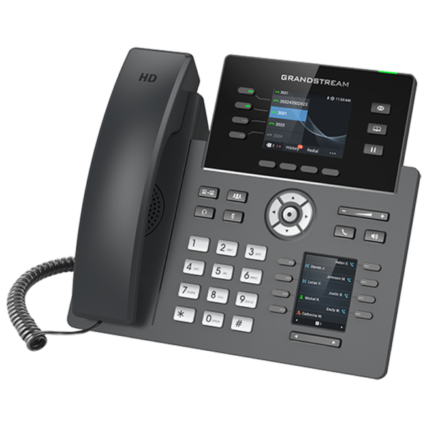 Protocolo/Estándares: SIP RFC3261, TCP/IP/UDP, RTP/RTCP, HTTP/HTTPS, ARP, ICMP, DNS (A record, SRV, NAPTR), DHCP, SSH, TFTP, NTP, STUN, Audio HD, microteléfono y altavoz con soporte para audio de banda ancha 4 teclas de línea con hasta 4 cuentas SIP, teclas de extensión 8MPK con LED de dos colores con 2 teclas izquierda/derecha Pantallas LCD duales con teclas BLF digitales Protección de nivel empresarial que incluye arranque seguro, imágenes de firmware duales y almacenamiento de datos cifrados Wi-Fi 802.11 a/b/g/n/ac de doble banda integrado Puertos Gigabit Ethernet de 10/100/1000 Mbps con detección automática y doble conmutación con PoE integrado Bluetooth integrado Garantía de 1 año