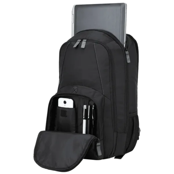 La mochila Targus 17″ Groove contiene un compartimento acolchado diseñado para proteger las computadoras portátiles con pantallas de hasta 17 pulgadas. La mochila también está equipada con un bolsillo frontal que incluye bucles para plumas y un bolsillo para medios con un puerto de auriculares de salida para escuchar música fácilmente sobre la marcha. Además del compartimento para portátil, la mochila Groove también cuenta con una gran sección para llevar libros o carpetas. También hay múltiples compartimentos accesorios, soportes de botellas de agua dobles y un cómodo bolsillo con cremallera lateral para un almacenamiento adicional. Ya sea que vaya de viaje, asista a la escuela o transporte de su computadora portátil al trabajo, esta mochila informal es funcional para el viajero diario.