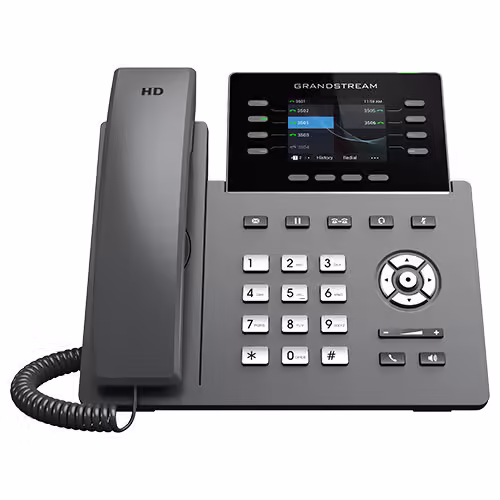 El GRP2624 cuenta con Wi-Fi integrado, soporte Bluetooth , una pantalla LCD a color con placas frontales intercambiables para una fácil personalización del logotipo y más, y es compatible con el Sistema de administración de dispositivos (GDMS) de Grandstream.